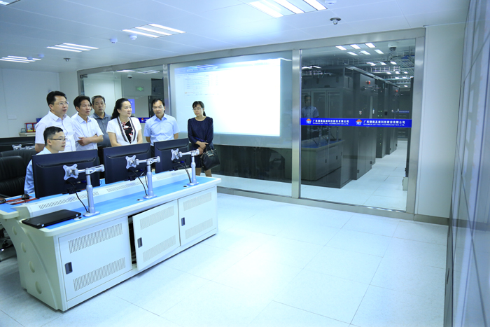 黃敏一行到建設(shè)在捷通公司的全區(qū)ETC數(shù)據(jù)中心機(jī)房詳細(xì)了解了數(shù)據(jù)中心建設(shè)投資、云技術(shù)、機(jī)房環(huán)境監(jiān)控、報(bào)警系統(tǒng)等情況。